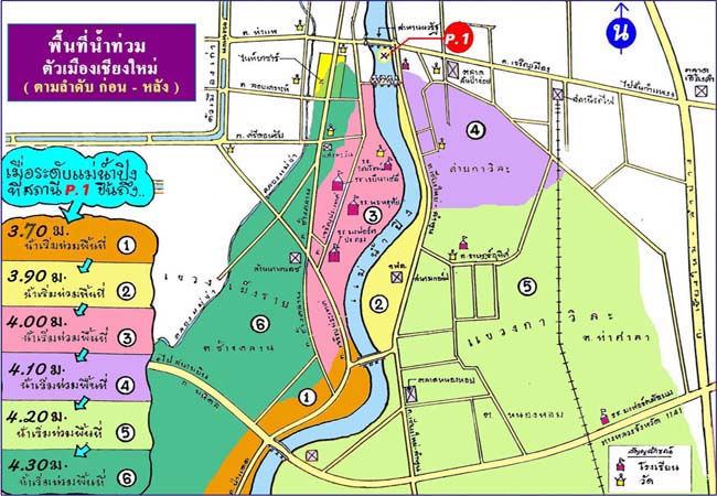 ส.ค.48) โดยมีน้ำท่วมในตัวเมืองเชียงใหม่ตั้งแต่ถนนไนท์พลาซ่า ถึงสนามบินเชียงใหม่ ทั้ง 6 โซน น้ำท่วมสูงประมาณ